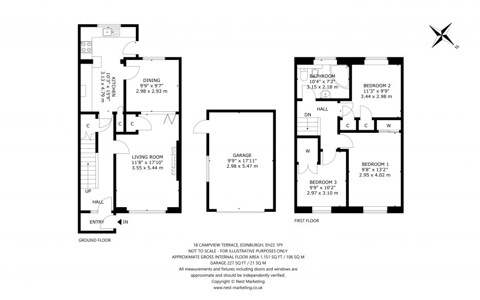 The ground floor features a bright living room, dining room, and a kitchen with access to the rear garden. Upstairs, there are three well-proportioned double bedrooms, all benefiting from built in storage space and a family bathroom.